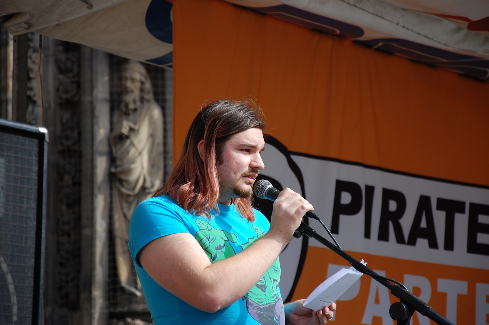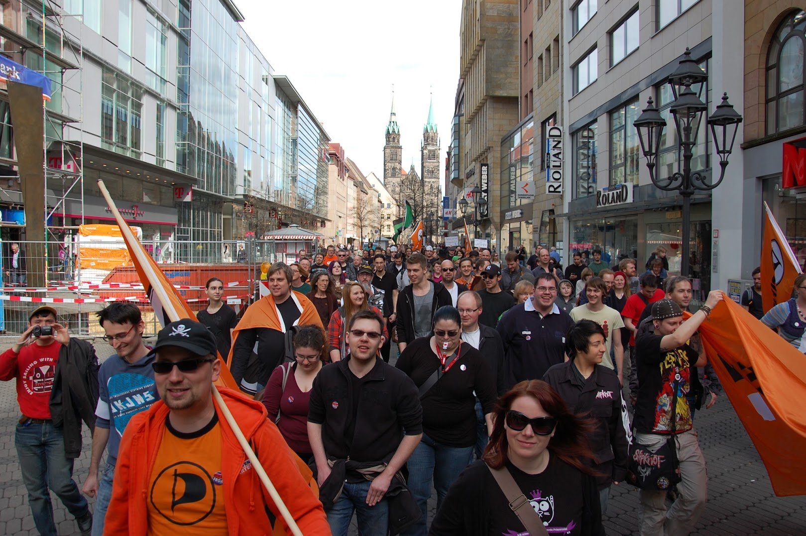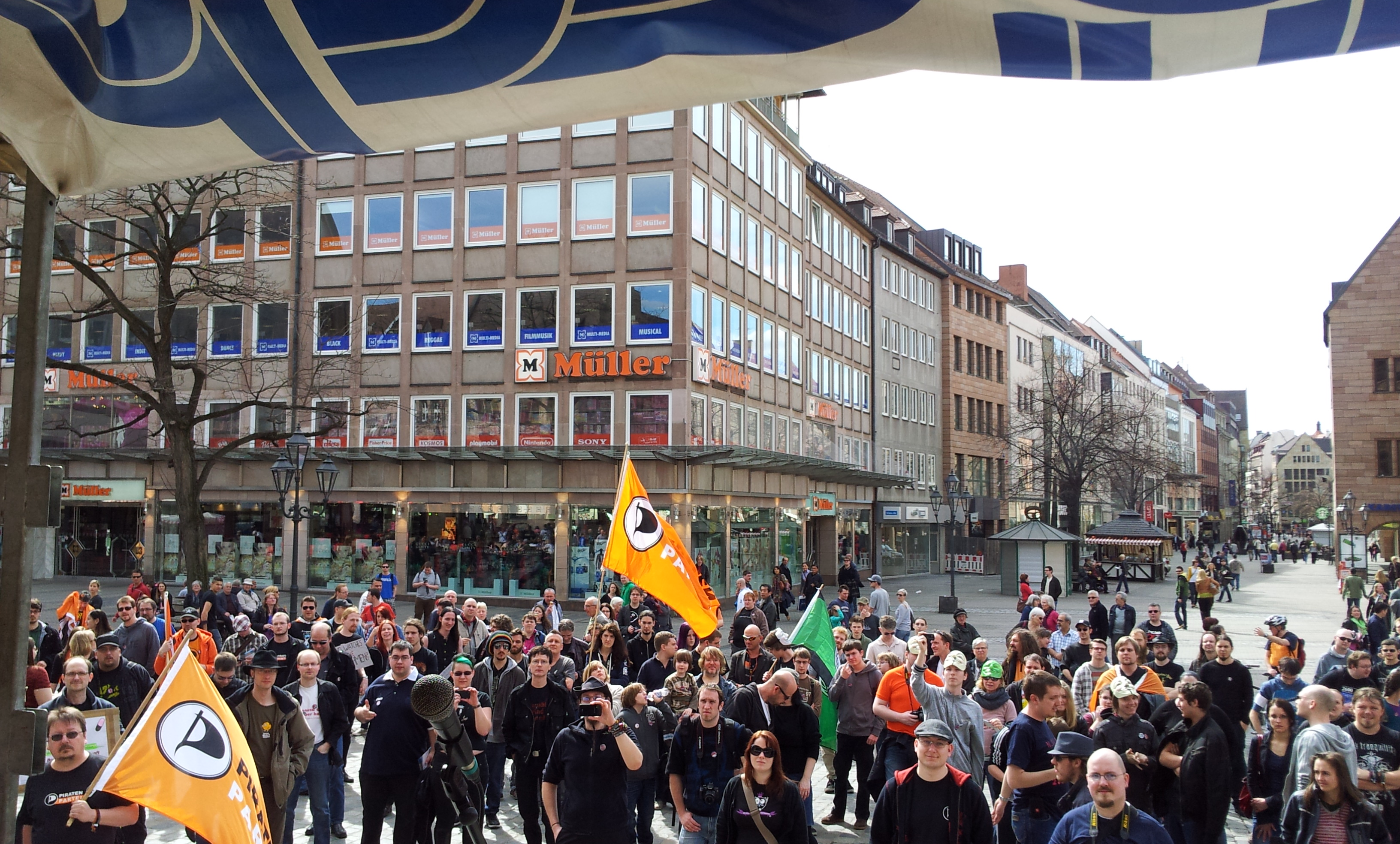 In Nürnberg organisierten wir als Piraten Mittelfranken am Sonntag, 14. April 2013, eine Demo dazu. Bei warmen Temperaturen und strahlendem Sonnenschein nahmen ungefähr 200 Menschen, davon viele Piraten aus ganz Bayern, an Kundgebung und Demozug durch die Nürnberger Innenstadt teil. Als bundesweit Aktiver gegen die Bestandsdatenauskunft und als Landtagslistenkandidat der Piratenpartei Mittelfranken habe ich dort eine Rede gegen die Bestandsdatenauskunft – und für das Menschenrecht auf Privatsphäre im Internet – gehalten. Als Abschlusskundgebung führten wir ein Open Mic durch, bei dem Teilnehmende der Demo der Öffentlichkeit in kurzen, guten Beiträgen mitteilten, warum sie sich ebenfalls über dieses neue Gesetz empören.